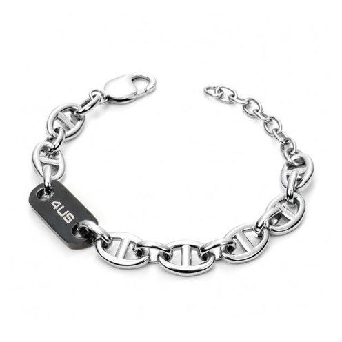 Bracciale a catena in acciaio anallergico con targhetta nera con logo.