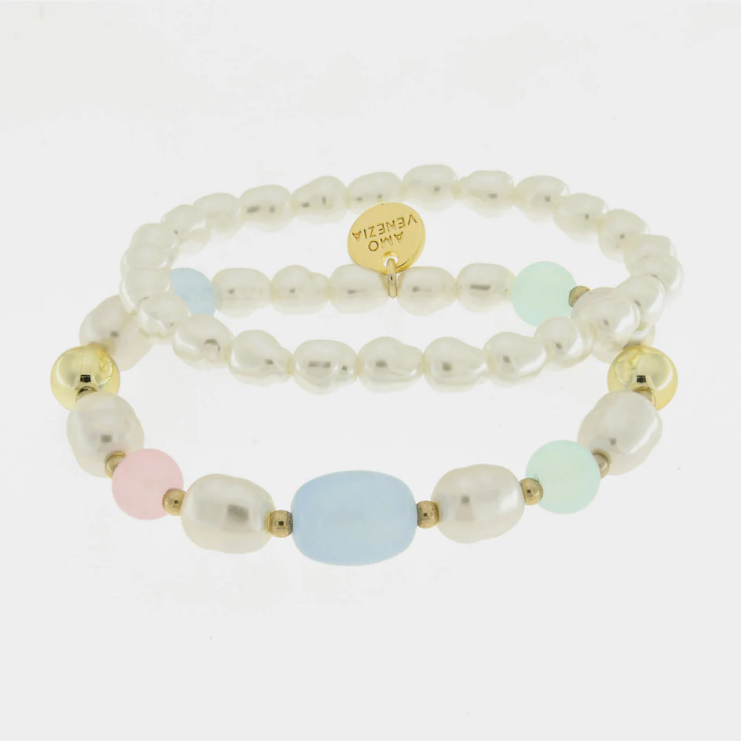 Bracciale in Metallo doppio filo con perle allungate multicolor