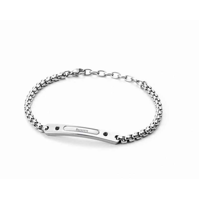 Bracciale a catena in acciaio anallergico con targhetta centrale logata.