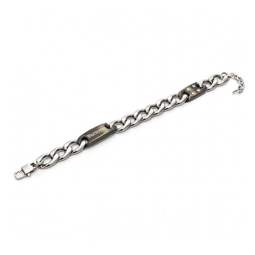 Bracciale a catena in acciaio anallergico con targhetta laterale nera con logo.